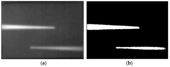 Image processing of image composition: (a) Median filter; (b) Segmentation by Otsu’s method.