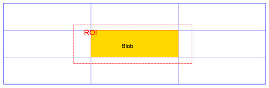 Figure 15 is a sketch of ROI based on blob and restrained by constraints, where the yellow area is a blob, and it expands the blue rectangle, but the red dotted portion is ROI due to the specimen boundary and neighbor blobs.