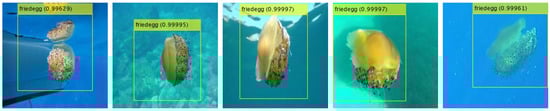 Clearly, the implementation of transfer learning has allowed very accurate jellyfish species classifications/assignments to be made. The models that performed best where those that used the GoogLeNet feature extraction network. While an increase in the number of anchors resulted in a slower classification process, a higher accuracy was also concurrently obtained through this measure. As expected, ResNet50 gave better results than ResNet18 and took less than 4 more seconds to classify the 200 test images. Figure 4, Figure 5, Figure 6, Figure 7 and Figure 8 present a sample of the results obtained through the implementation of classification Model 5.