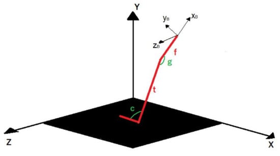 - c and g represent, respectively, the angle between foot and tibia and the angle between tibia and femur.