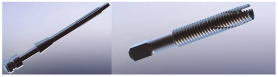 Two different prostheses, a press-fit (OPL) and a screw type (OPRA), have been analysed. The CAD models of the prostheses (Figure 5) were created using a 3D parametric modelling software (SolidWorks, Dassault Systèmes, Vélizy-Villacoublay, France). Both models of the prostheses are composed of two main parts: an intramedullary stem (fixture) and a transcutaneous part (abutment).