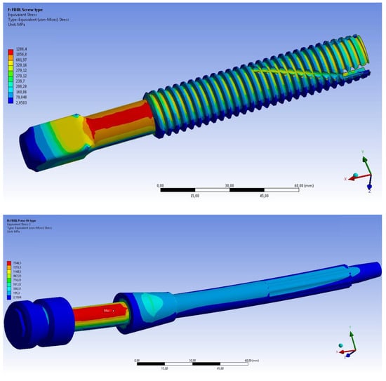 The long term success of OI implants is highly related to the mechanical loading acting on the bone and on the prosthesis during patients’ lifetime. Daily activities and unexpected critical events may produce, obviously, loadings of different kinds and magnitude that could cause failures. Two of the most common complications, in fact, are implant failures and peri-prosthetic bone fractures [4,21]. For these reasons, it is very interesting to fully understand the stress and strain distribution on the bone, the prosthesis and at the bone/fixture interface. Due to the complexity of this kind of investigation, numerical simulations are often used to assess the risks that patients can face. For several years, the Finite Element Method (FEM) has been used largely to investigate medical problems, especially in the field of orthopaedic implants [28,29,30]. Nowadays, the level of reliability and accuracy of FEM analyses is very high and, in many cases, it is comparable with that of the experimental studies [31,32].