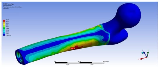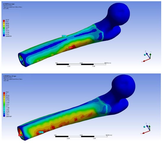 Table 3 reports the peak values of the equivalent von Mises stress on the external part of the femur and on the implant.