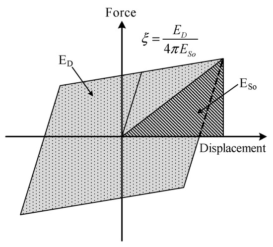 The damping capacity of the specimens can be determined from the energy dissipated by damping, , which is the area enclosed by the hysteresis loop, and the maximum strain energy corresponding to the shaded area, , as shown in Figure 8 [24]. This study derived the equivalent damping ratio as follows: