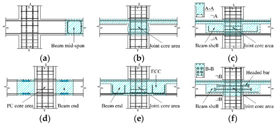 - Wu, G.; Feng, D.C. Research progress on fundamental performance of precast concrete frame beam-to-column connections. J. Build. Struct. 2018, 39, 1–16. (In Chinese) [Google Scholar]