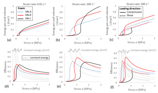 - Avalle, M.; Belingardi, G.; Montanini, R. Characterization of polymeric structural foams under compressive impact loading by means of energy-absorption diagram. Int. J. Impact Eng. 2001, 25, 455–472. [Google Scholar] [CrossRef]