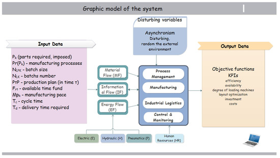 The analysis of flexible manufacturing systems is done from the point of view of system’s theory. The system is generally defined as the set of components grouped according to given ordering rules based on interaction relations. In structural analysis, two types of schemes are used: layout scheme and block scheme (structural). The layout of the system contains all the components of the system as elements and their relative arrangement in the plan, in real positions, without flows and relational connections. It is drafted using standardized or conventional symbols.