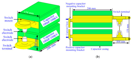 The simplification process of film capacitors and gas switch in a discharging brick is based on two principles [14]: the equivalent capacitance, inductance, and resistance should stay the same; the magnetic field distribution outside the brick model should remain unchanged.