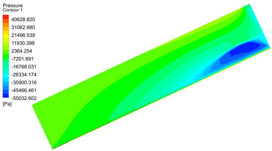 Figure 3 shows the pressure contours of a blade surface in working condition 3, and Figure 4 shows the vorticity contours of the flow field in working condition 3. It can be seen from Figure 3 that there are significant shock waves near the blade tip.