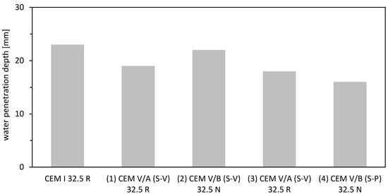 - Water penetration of CEM V concrete admixtures was considerably smaller compared to Portland cement.