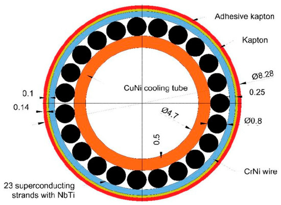 Cross section of the NbTi superconducting cable for the busbars of the SIS100 synchrotron [10].