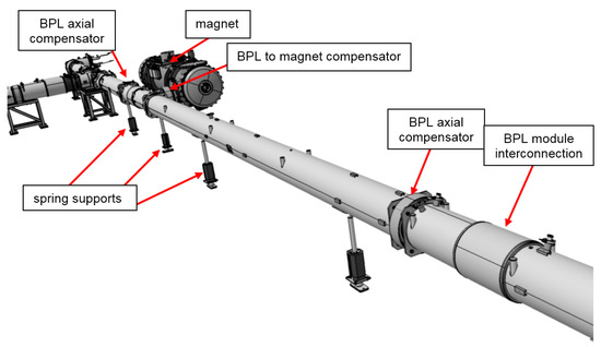 As in standard transfer line designs, two additional axial compensators per module are used to increase BPL flexibility and compensate for a thermal contraction in the case of helium leakage.