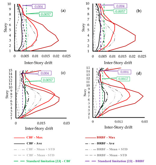 - Negligible differences are ultimately observed in the mean value of the maximum floor acceleration between the four regular and irregular 10-story frames with either CBFs or BRBs. In contrast, the mean value of the maximum acceleration is higher in the 15-story frames with BRBs than in those with CBFs.