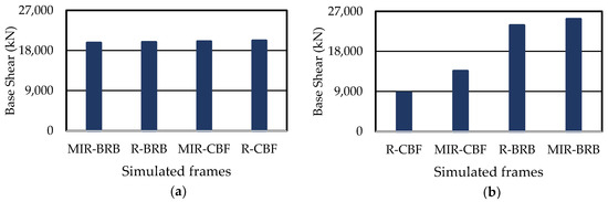- In contrast to the 10-story frames, using the BRB increase the base shear as a design parameter in both the regular and irregular 15-story frames. Moreover, the maximum base shear is observed in the 10-and 15-story MIR-BRBF.