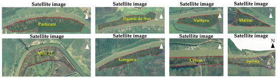 In the present study, the settlements located along one of the three main branches of the Danube (the Sulina branch with a length of approximately 71 km), which partly ensure the water flow to the Black Sea, were taken into account (Figure 1). The settlements analyzed were Partizani, Ilganii de Sus, Vulturu, Maliuc, Gorgova, Mila 23, and Crișanand Sulina. These localities are vulnerable to the high-water level of the Danube.