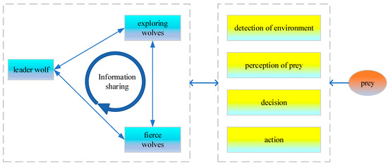 - The Manhattan distance between a fierce wolf and the leader wolf is less than the threshold distance . is estimated according towhere is the factor representing the threshold distance and is the variable’s domain in the dimension.