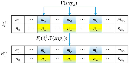 - Sieging behavior. The leader wolf, whose position is treated as the prey’s position, guides all other wolves to siege the prey with a small step. For iteration , the position of the prey is ; then the new position of wolf is updated according towhere is a random real number in , and is the length of the siege step. For any wolf, if its new position is better than the current position, its position will be updated, otherwise its current position will be kept. The wolf whose position is the best will be chosen as the leader wolf.