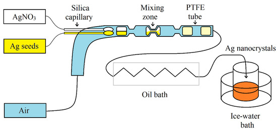 - Zhang, L.; Wang, Y.; Tong, L.; Xia, Y. Seed-Mediated Synthesis of Silver Nanocrystals with Controlled Sizes and Shapes in Droplet Microreactors Separated by Air. Langmuir 2013, 29, 15719–15725. [Google Scholar] [CrossRef]