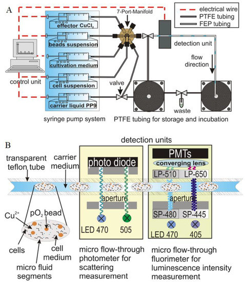 - Cao, J.; Nagl, S.; Kothe, E.; Köhler, J.M. Oxygen sensor nanoparticles for monitoring bacterial growth and characterization of dose–response functions in microfluidic screenings. Microchim. Acta 2015, 182, 385–394. [Google Scholar] [CrossRef]