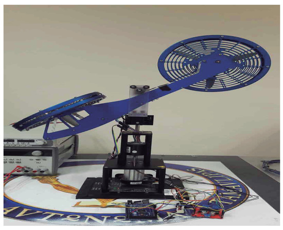 ® Monster Moto Shield H-bridge was used with a voltage capacity of 16 volts, 30 amps of current and 20 KHz of PWM frequency. The sensing was carried out by two rotary optical encoders, one placed at the base of the platform, which allows the yaw angle to be measured,