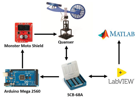 Figure 6 which shows the communication and data directly between the devices and the software. First of all, it is necessary to control the system to carry out the detection of faults. Because the 2-DOF system is in a closed loop, is possible to implement a PID control. The experimental platform consists of two motors, a lift motor that causes the pitch motion, and a tail motor, which produces the yaw motion. DC motors with a nominal voltage of 12 volts. The platform parameters are shown in