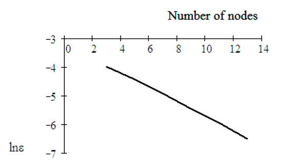 Table 1 presents the relative error as a function of the number of mesh nodes. The same resuls are shown in