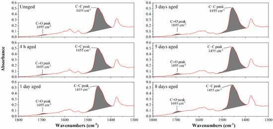 - Bowers, B.; Huang, B.; Shu, X.; Miller, B. Investigation of Reclaimed Asphalt Pavement Blending Efficiency through GPC and FTIR. Constr. Build. Mater. 2014, 50, 517. [Google Scholar] [CrossRef]
