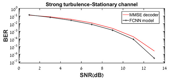 The results of our FCNN DL model when the channel is stationary with slow fading and strong turbulence are presented in Figure 6.