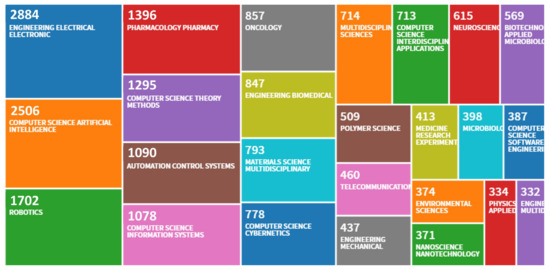 Historically, different modalities have also been used by different researchers that play a crucial role in exploring successful HMT implementation. Researchers from [21] used a model-based approach for cognitive assistance to track pilots’ changing demands in a dynamic situation. They used flight deck interactions and EEG recordings to find individual pilot’s behavior in response to flight deck alerts. Whereas researchers from [22] created a human-robot team where humans had their vehicle to pilot and worked together with several autonomous vehicles to accomplish a common goal in a marine environment. In their work, they planned to use the human operator’s physiological measurements to help autonomous teammate vary their communication and levels of control based on the operator’s cognitive load. Contrary to others, ref. [23] in their work used image descriptors to create a successful HMT. Figure 3 is a visual representation of publications in the area of human machine teaming with corresponding disciplines of the research areas.