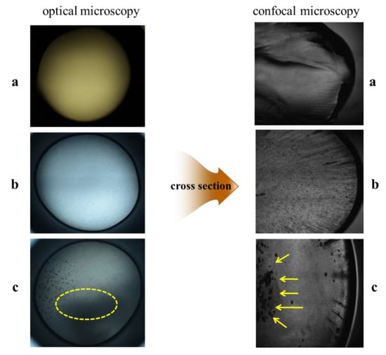 Morphological analysis was undertaken using field emission scanning electron microscopy (FE-SEM, Hitachi_S-4300 and EDX-350, Tokyo, Japan). Observations of cross-sectional and surface views of the OCs were captured using an optical microscope (Nikon ECLIPSE 80i, Tokyo, Japan) and confocal laser scanning microscopy (confocal, Carl Zeiss LSM700, Dublin, CA, USA).