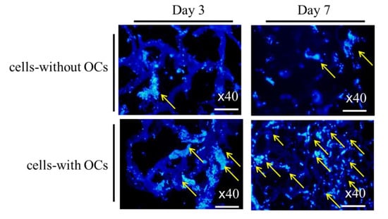 OC-embedded cells were visualized using DAPI staining and 3D fluorescence microscopy.