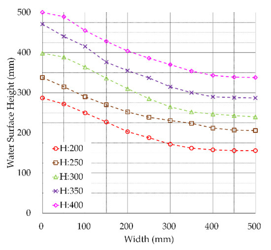 3.2. Dynamic Characteristics of Fluid Surface According to the Ratio of Fluid Height and Structure Width