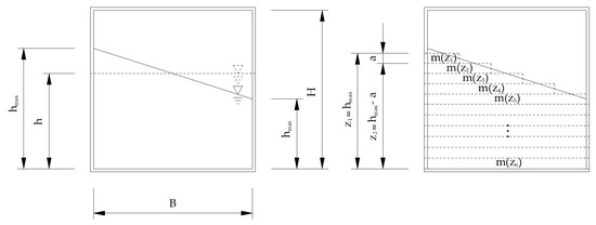In this study, the shape of the fluid surface during a seismic load was assumed to be a straight line (the most simplified form) and can be represented as Equation (4).