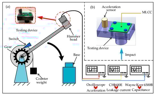 - Xuhui, Z.; Kuahai, Y.; Hongyu, X.; Bin, L.; Xingguo, K. Failure analysis of multilayer ceramic capacitor structure under high G impact load. Electron. Compon. Mater. 2016, 35, 28–31. [Google Scholar]