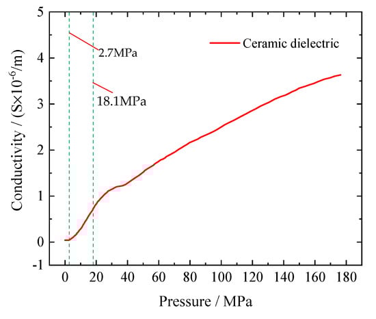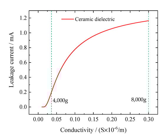 - The piezoresistive effect of the ceramic dielectric is the dominant factor in leakage current variation. The insulation resistance begins to decrease when the threshold pressure exceeds 2.7 MPa. With increasing pressure, the insulation impedance of the ceramic dielectric decreases continuously, and when the pressure reaches 18.1 MPa, the resistance drops gradually. By combining the P-R model and the equivalent circuit model, the relationship between the leakage current and impact acceleration can be simulated, which is an approximately exponentially increasing relationship.