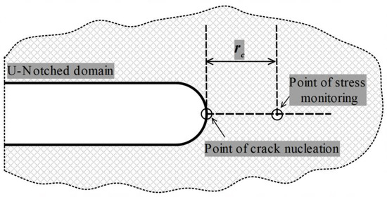 A schematic of the MS criterion would be analogous to that shown in Figure 4 for the MTS criterion, but substituting rc by dc, and averaging the stress over dc, instead of determining the stress at rc.