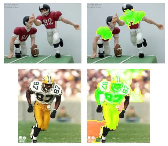 Examples of how LIME explained classifying images as American football. We can see that the equipment, such as helmets, visors, and shoulder pads, of athletes is decisive for classification.