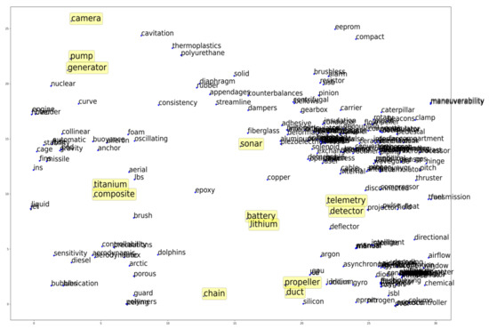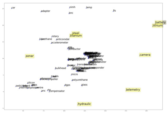 Based on the clustering result of the product layer, the relation to the keywords in each group is analyzed by experts, and the topic of the clusters as well as the shapes are defined as depicted in Table 3. The complete clustering results of product keywords are listed in Appendix B. For example, in Table 3, considering the actual result, the k value is adjusted to 15 to make the result more significant and valuable. The topic of cluster 1 is defined as sensor after analyzing the interrelationships among the keywords of sensor, gps, strobe, telemetry, laser, altimeter, transponder, antenna, didson and echosounder.