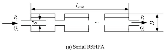 where denotes the number of RSHPA, denotes the transfer matrix of i-th RSHPA, and denotes the total transfer matrix of the serial RSHPA. Because the flow going through each RSHPA is the same, the total transfer matrix of parallel RSHPA can be derived as: