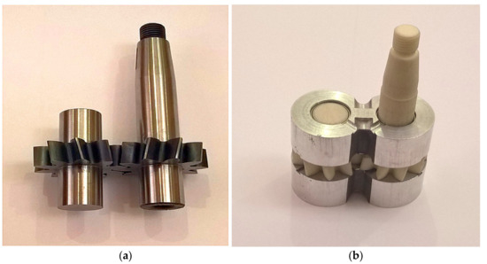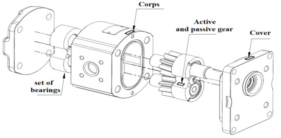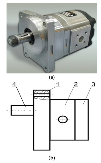- Osiński, P. High Pressure and Low Pulsation Gear Pumps with External Meshing; Publishing House of the Wrocław University of Technology: Wroclaw, Poland, 2013. [Google Scholar]