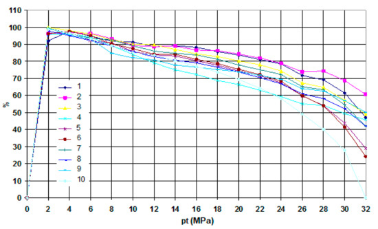 - determination of the actual efficiency of the gear pump Qrz = f(pt) and