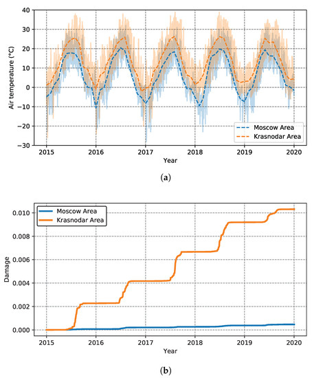 - Significant impact of the place of operation. For the considered zone, the total damage value over five years was more than four times higher in the Krasnodar area compared to the Moscow area.