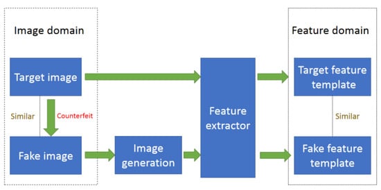 Today, people are enjoying variety of internet services that are associated to the advancement of telecommunication, smart devices, small IoT devices, and social media. For the growth of multimedia in future, multimedia security should be braced with the supporting technologies, such as identity management. Unlike traditional identity management approaches that require users to supply their own credentials and/or known-knowledge for authentication, biometric systems offer better usability [1,2] and have become versatile [3]. However, biometric systems are vulnerable to several attacks, such as image-level attack. In image-level attacks, the attackers try to find or artificially counterfeit the fake biometric images that can successfully cheat the systems, which can be used to impersonate genuine users [4]. Two typical instances are reconstruction attack (RA) [5] and presentation attack (PA) [6].