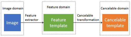 Cancellable biometric refers to the intentional and systematically repeatable distortion of biometric features in order to protect sensitive user-specific data. If a cancellable feature is compromised, the distortion characteristics are changed, and the same biometric is mapped to a new template, which is used subsequently [36]. Three goals of cancellable biometric follow.