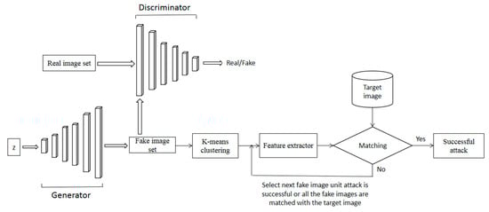 Thus, K-means clustering is conducted on the fake image set as follows to enhance the diversity and accordingly reduce the number of attack times.
