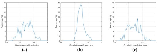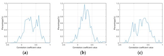In Figure 9, it is difficult to distinguish (Figure 9c) from (Figure 9a). The abscissa range of (Figure 9b) is narrower than (Figure 9a), which implies that the correlation coefficients in (Figure 9b) also exist in (a), so it is also difficult to distinguish (Figure 9c) from (Figure 9a).