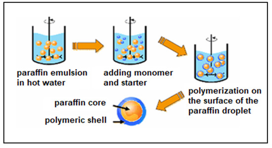 Different types of paraffins (PCMs) were tested. The PCMs utilized were purchased from Microtek Lab. The core is paraffin and the shell is a polymer (see Figure 3). These PCMs are all in microencapsulated form and physically have an appearance of a white powder.
