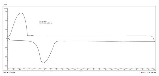The crystallization temperatures (Tc), melting temperatures (Tm), crystallization enthalpies (ΔHc) and melting enthalpies (ΔHm) obtained from the DSC are reported in the Table 3. With regard to the outdoor use of PCMs, Nextex 6D and Nextex 18D materials were selected for further experimental work.