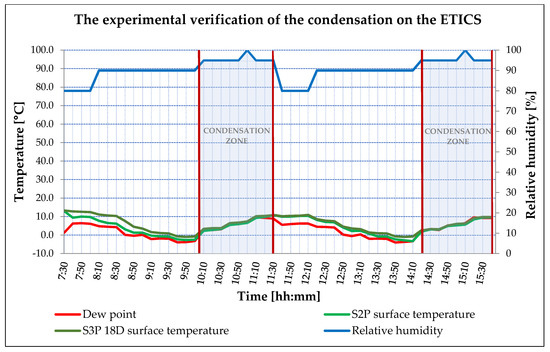 The experimental verification of the condensation on the ETICS is shown in Figure 13.
