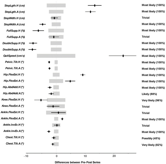 - Reducing the Step.Wdth means reducing the base of support, which can be associated with improvement in terms of stability and confidence [56]. However, it is necessary to check whether the change is causing instabilities (i.e., increase in the Pelvic.Tilt or Chest.Tilt).